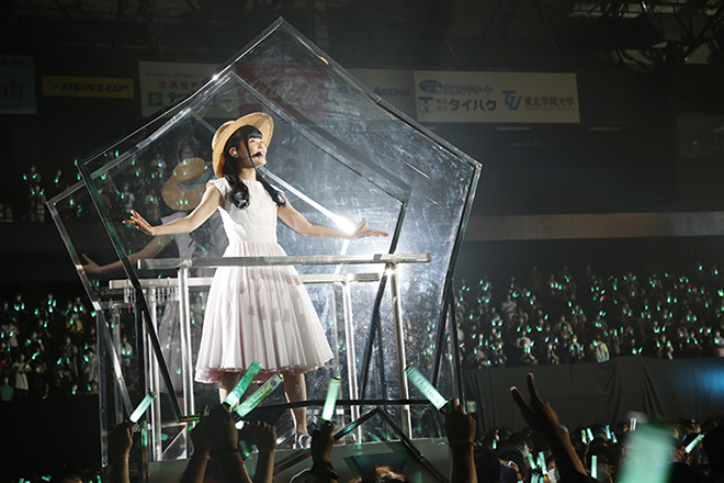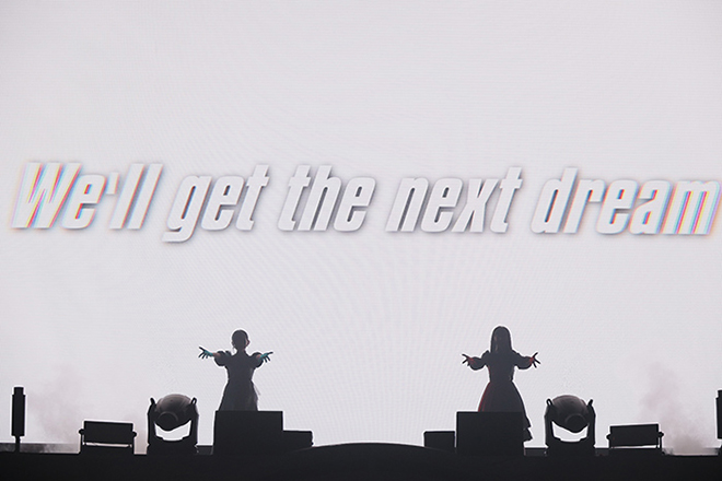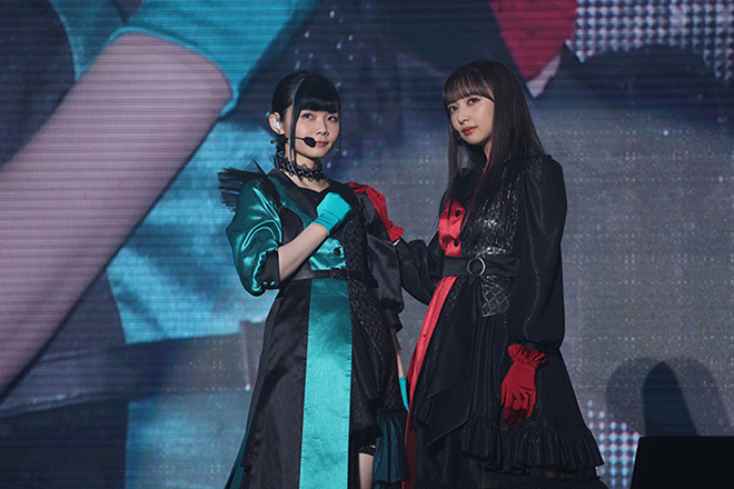 対照的な衣装を着て、14日のDay.1公演では「Landing action Yeah!!」を、15日のDay.2公演では「ホップ・ステップ・ワーイ!」をトロッコで巡りながら歌唱した2人。再度幕間映像を挟み、衣装を替えたAZALEAによる「GALAXY HidE and SeeK」の歌声が会場内を満たしたあとは、新曲「メタモルフィズム」を披露。さらに「ときめき分類学」「空中恋愛論」「卒業ですね」と、曲名に関連性を思わせる3曲を歌い上げた。