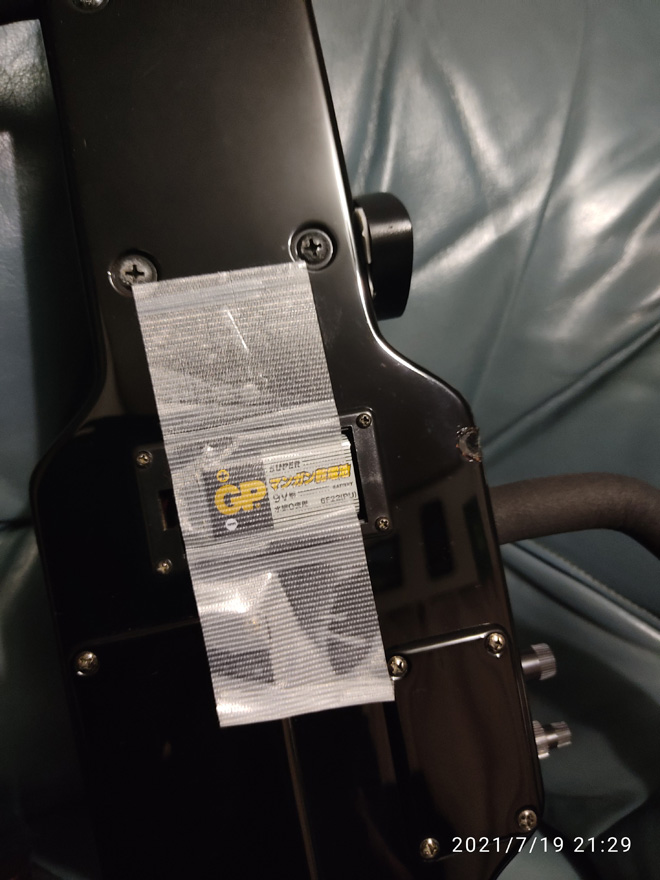 ギタリストがこだわる繊細なタッチを忠実にピックアップする新開発マイク(USA製)をブリッジに搭載。ディマジオやフィッシュマンより好みの甘い音がします。裏の電池ホルダーを紛失しましたので養生テープで固定しています。