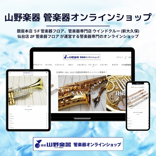山野楽器が、管楽器に特化した新しい通販サイト「山野楽器 管楽器オンラインショップ」をオープンした。