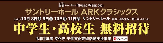 ピアニスト・辻井伸行とヴァイオリニスト・三浦文彰がリーダーを務め、世界中で活躍する音楽家が集結する音楽祭<サントリーホールARKクラシックス>全8公演に、中学生・高校生が無料招待される。