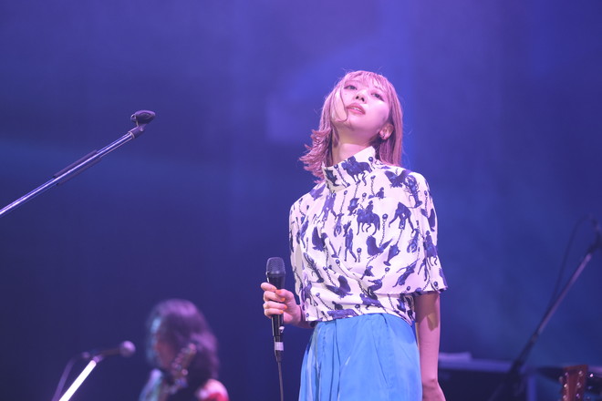ライブの後半は、8月8日にリリースされた新曲「ICE CREAM.」から。「今までの夏も、これから作っていく夏も彩っていけますようにという思いを込めた曲です」というこの曲は、ネオソウルの潮流をJ-POPに結びつけた音像、そして、“魔法の夜にとけだして 連れて行って”という歌詞が溶け合うナンバー。キュートな歌声がゆったりと響き、観客も楽しそうに身体を揺らしていた。