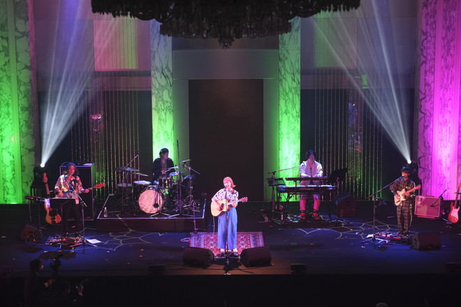 先に登場したのは、竹内アンナ。バンドメンバーの軽快なサウンドとともに放たれたオープニングナンバーは、爽快なポップチューン「RIDE ON WEEKEND」。さらに“「アイデンティティ 持ってんじゃん」気づいて 信じて”というラインが印象的なサマーポップ「SUNKISSed GIRL」を披露し、心地よいムードを生み出していく。竹内アンナのアコギ、谷川正憲(G&Cho/UNCHAIN)、名村武(B)、岡本啓佑(Dr/黒猫チェルシー)、別所和洋(Key/Gentle Forest Jazz Band)によるアンサンブルも絶品だ。