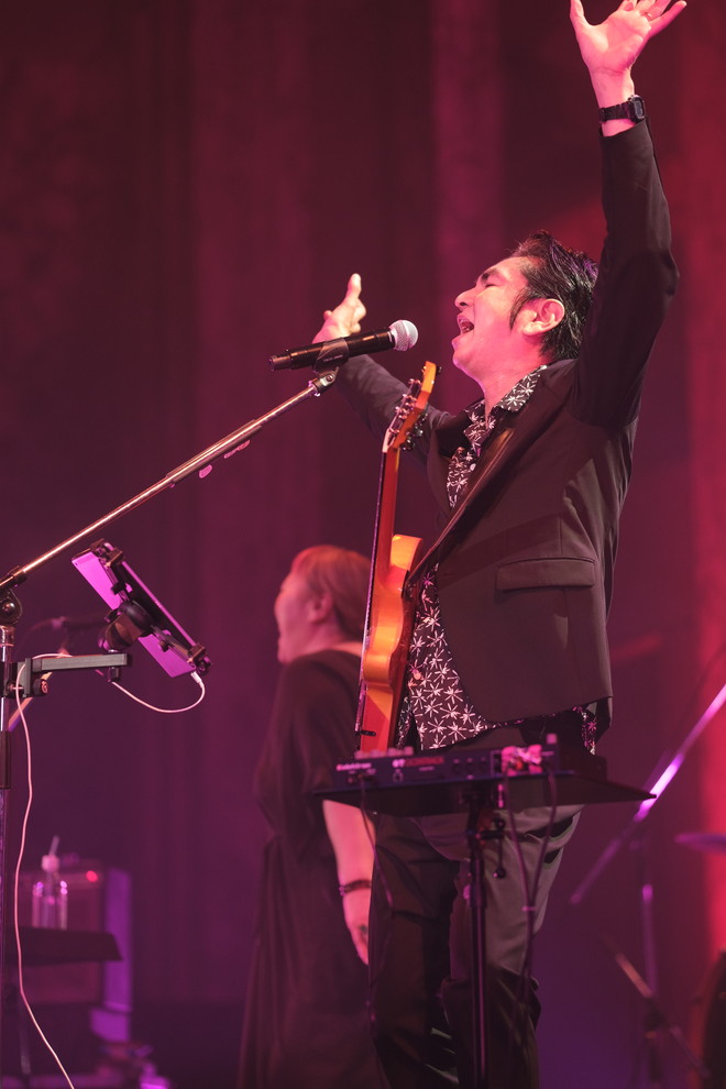 「こんな大変な状況を潜り抜け、来てくださってありがとうございます。せめて音楽を楽しんで、心をグチャグチャにしていただけたらと思います」というMCの後は、キャリアを象徴する楽曲が演奏された。まずは1993年にリリースされた「接吻」。ハイハットとオルガン、“長く甘い口づけを交わす”というフレーズが聴こえてきた瞬間、心が震えるような感動が広がる。数多くのアーティストにカバーされた名曲だが、本家本元の「接吻」は、やはり格別。エンディングにおけるソウルフルなシャウト、「声が出せないときは、手がある!」とハンドクラップを要求するパフォーマンスも最高だ。