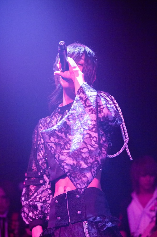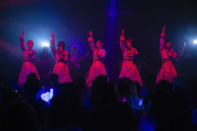 MCでは、その新曲に関する情報も。新衣装は、デザイナーとして仕事をしていたことがあるメンバーのシヅキがデザインしたとのこと。こうしたメンバー各々の個性を最大限に活かしているところも、このグループの魅力の一つだろう。さらに、新曲「無常論」のミュージックビデオ制作、歌ってみたリレー企画の実施、10月8日のTSUTAYA O-EASTでの主催イベント開催などの発表もあった。