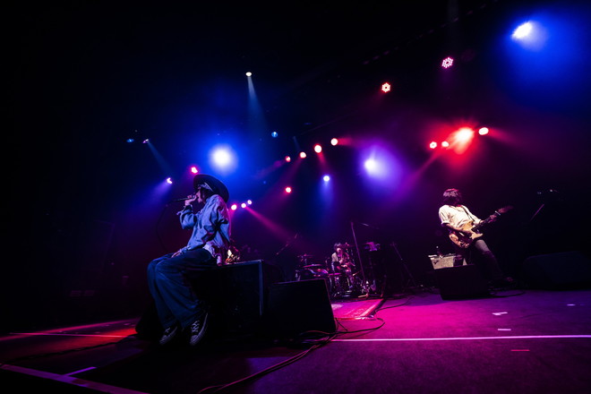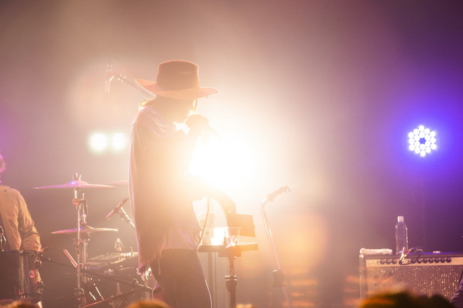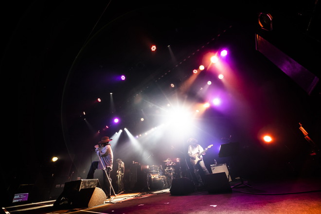 トップバッターは清春。ライブは独自の世界観を放出しまくる妖艶なナンバー「下劣」でスタート。いきなりの清春らしさ全開な展開にホストである怒髪天のファンも引き込まれるよう。「錯覚リフレイン」「凌辱」といった対バン相手の怒髪天に全く忖度のない曲を立て続けに披露しながらライブ自体も良い意味で緩い雰囲気で進んでいく。