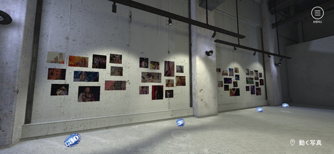 壁に飾られた総数40枚のメンバーの写真にマーカーを合わせると写真が動き出します。写真は映像を切り出したもので、過去のライヴ映像から選定。