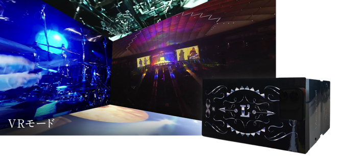 ハコスコにスマートフォンを設置し装着することで、「L’Arc-en-Ciel 30th L’Anniversary VR Museum」の世界に入り込んだ体験ができるモード。6面シアターで体験できる。