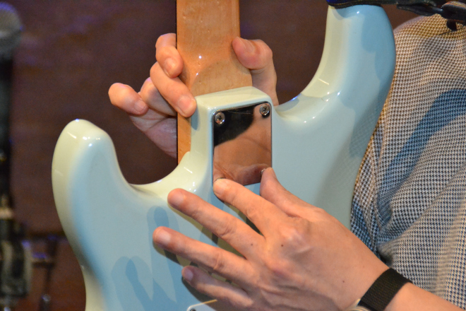 森園:たとえばネック側の2本をがっちり締めてボディ側を軽く締めると、ちょっとネックが起きる。そういう微妙なところをいじれるんですよ、フェンダーのギターというのは。逆にギブソンはいじれるところがまったくない(笑)。