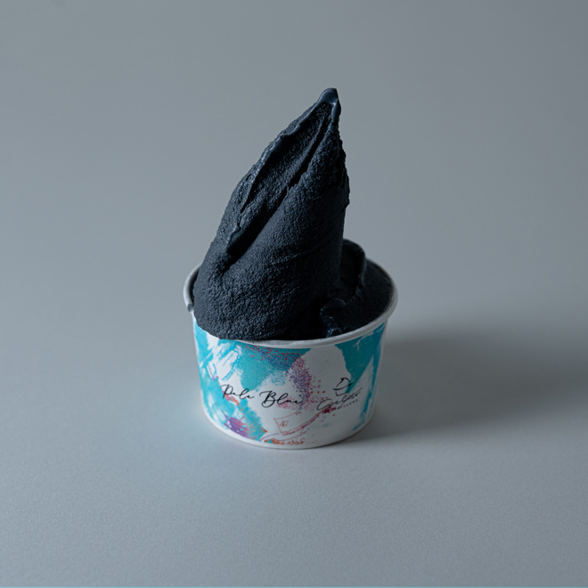 6月にリリースされたシングル「Pale Blue」は、表題曲「Pale Blue」はTBSドラマ『リコカツ』主題歌として書き下ろしたナンバーで、別れから始まる恋を表現。“Pale Blueジェラート”は鮮やかなPale Blueカラーで、グレープフルーツの爽やかな香りと甘酸っぱさに個性的なライチとレモンをアクセントにしたフレーバーが、恋に落ちた瞬間を感じさせる仕上がりとのこと。また、「ゆめうつつ」は、日本テレビ『news zero』テーマ曲として書き下ろされ、夢と現実の反復をコンセプトとした作品。“ゆめうつつジェラート”は、濃厚なミルクベースに生のバニラビーンズとブリュレのキャラメリゼが入り、カリカリした食感がまさに夢のようなコラボレーション。「死神」は、古典落語の演目「死神」をモチーフに制作した楽曲で、噺家や死神を米津自身が演じたミュージックビデオが話題となった。“死神ジェラート”は、濃厚なミルクベースに黒胡麻を煎って竹炭を加え、漆黒に仕上げた和風スイーツに。札幌を拠点としたジェラート専門店「円山ジェラート」の協力のもと、オリジナルフレーバーが完成した。