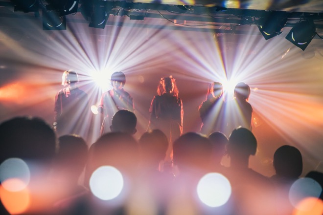 中間のBGMでブレイクを挟み、繊細でポップな「綺麗事スコープ」と、エネルギッシュに全身でハートを描いた「ナチュラルアレルギー」をノンストップに全力で届けていく。気づけば、夜公演のセットリストは8月20日に音楽配信サイトにてリリースされた初のアルバム『曖昧なアルバム1』の曲順にほぼなぞらえる形で構成されていた。そのアルバムの中でも、このライヴのハイライトとしても語りたい2曲をラストに用意。それが「AIMAI」と、夜公演で初披露となった新曲「サイカイノユメ」だ。ワンマンという自分たち自身を色濃く表現できる空間で、このラスト2曲を歌い上げる5人から感じられたのは、胸に抱いているステージへ立つ想いの“真髄”のようなもの。