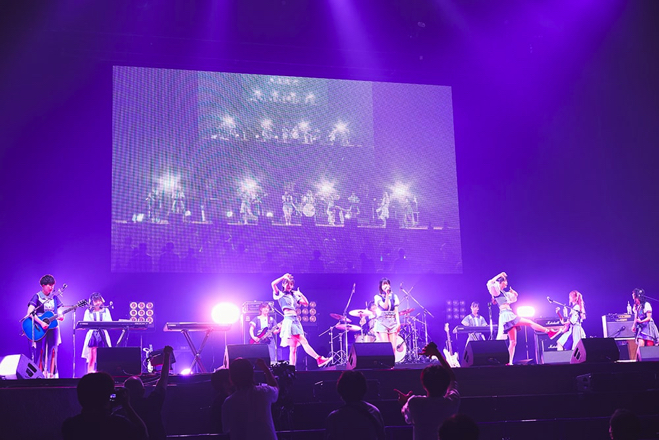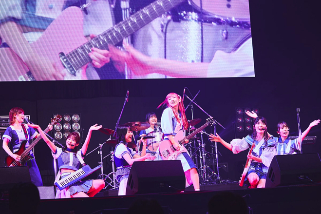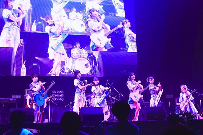 楽器演奏とダンスパフォーマンスのMIX、バンドとアイドルのMIX、まさに“ガールズバンドアイドル“という唯一無二のパフォーマンスで久しぶりに出演したアイドルフェスを盛り上げた。