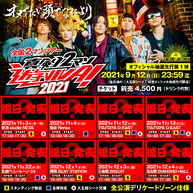 オメでたい頭でなによりが、11月から12月にかけて<オメでたい頭でなにより 全国2マンツアー『真剣2マン遊VIVA!』>を開催する。