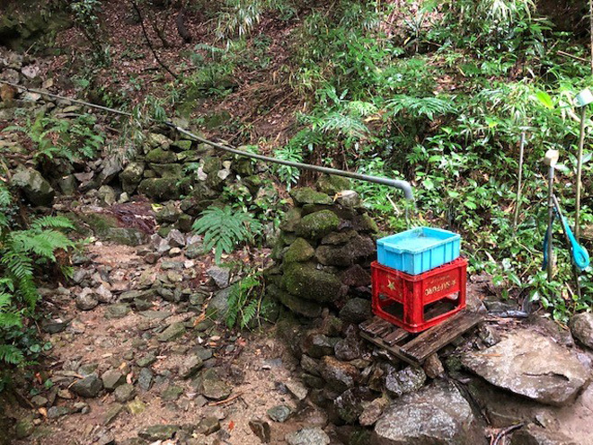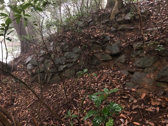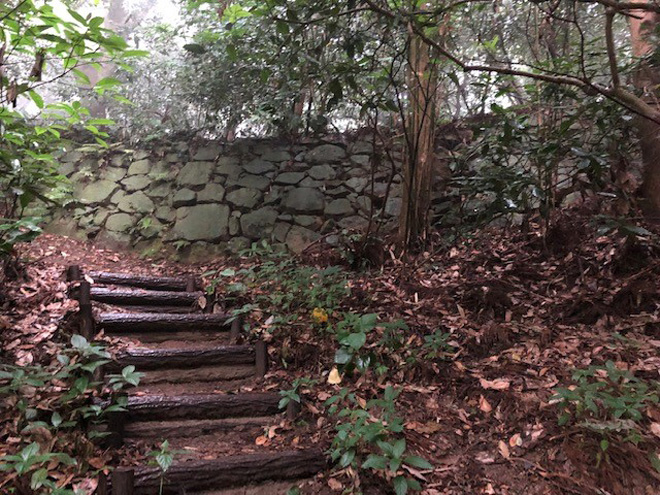 そんな厳しい山の印象があったが、途中には湧水もあり、これがまためちゃくちゃ美味い。休憩を重ねてゆっくりマイナスイオンを感じながら登っていただきたい。そんな中、石垣が突如現れる。膨らみが出てしまっているが今もこれだけ残っていることに感動。曲輪からの移動は虎口が続いており、道幅を狭める。雑草で石垣が見え隠れしているが細かくチェックすると実にたくさんの場所に石垣が用いられていたことがわかる。崖を覗くと薄っすら空堀だったり堀切を発見出来る。井戸の跡もあり、山城だけに水の確保が大事。それでもずいぶんと山の上の方に掘られた井戸だ。当時の生活の様子が窺える。本丸周辺も石段の跡や虎口、門跡などが残っている。本丸は曲輪の中で一番大きなスペースがあり、御殿までは建てられなかっただろうが、博多湾も見渡せるし、物見櫓などがあったのだろう。実に眺めが素晴らしい。3号線も見える。この本丸に訪れて立花山が城だったことがはっきりとわかる。城が大き過ぎて、登山口がたくさんあることでローマよろしく1日にして成らずの立花山城だが基本は立花山口から登ると良いだろう。