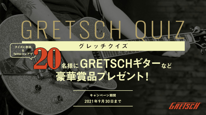 フェンダーは、日本国内でのGretschブランド製品の取り扱い開始を記念して、9月1日から、【「#グレッチクイズ」でギターやiTunesギフトカードが20名に当たる!】キャンペーンを開始した。