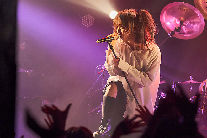 「次にやる「デザートの楽しいマーチ」は『RAINBOW』に入っていて、今回のツアーから登場した新しい曲なんですが、今回のツアーでやってくうちに“始まったらおまえらが前に全員で突っ込んでくる曲”になっちゃったんだわ。ごめんね(笑)。もし、そういうノリがキライだったら好きになって。今日は我慢して拳を挙げてっていうかたちになると思うけど、いつかみんなでグチャグチャになれる時が来たら突っ込んで来いよ、名古屋!」──千秋