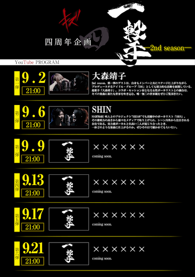 キズが四周年記念企画『一撃 -2nd season-』第二弾のゲストを解禁した。