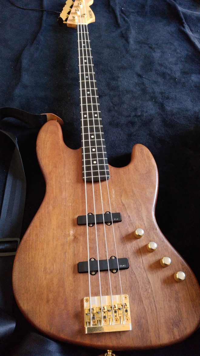 ウォルナット材を使っておりかなり重く、動きながら弾くのも大変なベースでしたがカッコイイし、雑誌か何かで見て憧れだったメーカのmoonのJJにそっくりなのもあり当時としては大金叩いて買ったので一生大事にすると決めてたのですが、高校に入学してから何回かライブを行った際にふと目を離した隙に盗まれてしまいました。