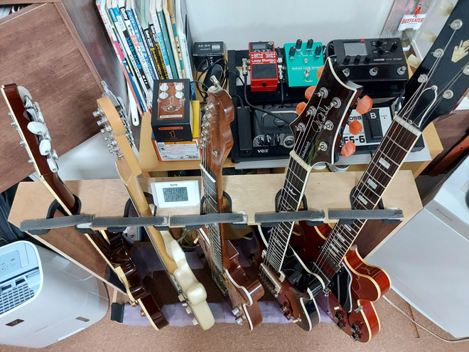 【俺の楽器・私の愛機】439「コロナ渦夏、愛器達の憩いを想い手作りスタンド(DIY)」