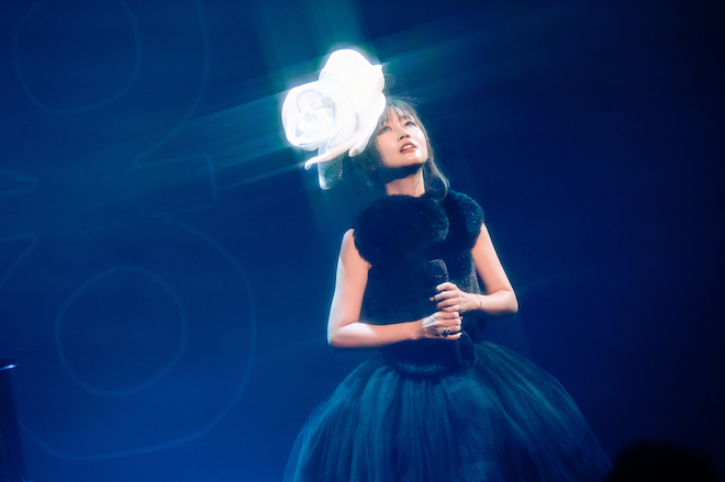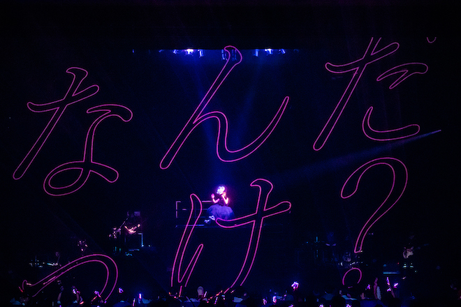 黒のドレスを身に纏い白いバラのカチューシャをつけた大塚 愛にピンスポットが当たると、印象的なピアノの旋律が鳴り響き、オープニングナンバーとして披露されたのは「なんだっけ」。6月に“大塚 愛”名義での新曲としては約2年ぶりにリリースされた曲だ。答えのない日常や、答えのない人生に「なんだっけ」と問いかける大塚 愛の歌声に合わせ、場内のオーディエンスも声に出さずに心のなかで一緒に「なんだっけ」と歌っているように感じる。
