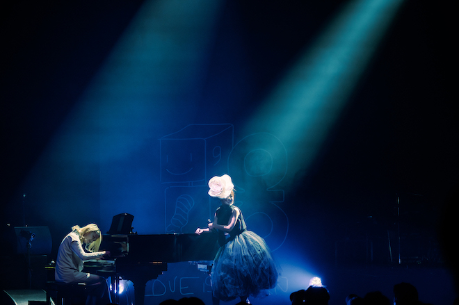 ふたたび紗幕が下り、幻想的な映像が投影されるなか「HEY! BEAR」と「end and and ~10,000 hearts~」の2曲が披露される。次の曲を披露するためにピアノの前に座った大塚 愛は「明日から19年目に突入ですが、ここまで続けられるとは正直思っていなかったです。こんなにも続いていることがずっと奇跡のなかにいるような感じです。いつも一緒に夢を追ってくれてホントにありがとうございます!」と今まで支えてくれているファンに感謝の想いを伝える。