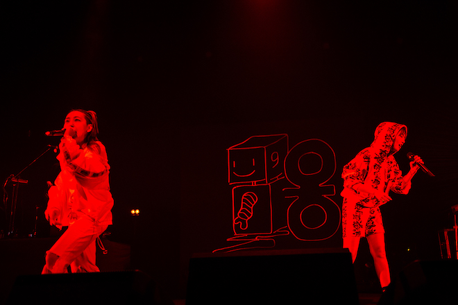 ハイテンションでステージに登場した大塚 愛とあっこゴリラが披露したのは「ハイナビ」。あっこゴリラの放つパワーとエネルギーに引っ張られるように、エナジー全開でパフォーマンスする大塚 愛。さっきまでとはガラっと空気が変わり、場内のボルテージが急上昇する。