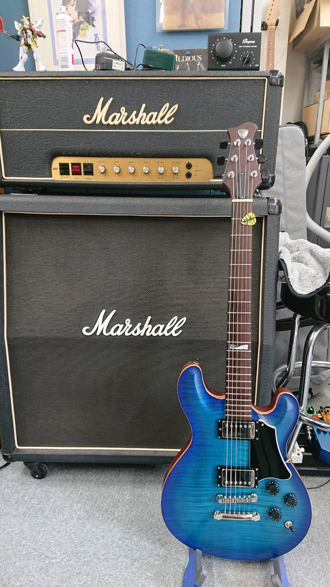 ところが、後日、知り合いのギタリストのおっさんと店舗へ行ったところ、店の隅っこに隠されるように置いてあるこの子を発見しました。で、一目惚れ。聞けば、プロトタイプとして2本製造され、実際に販売するとなると価格が高騰するため、今後量産品が世に出る可能性は低いとのこと。まるで、ガンダムのような経歴を持つこの子の購入に決定しました。