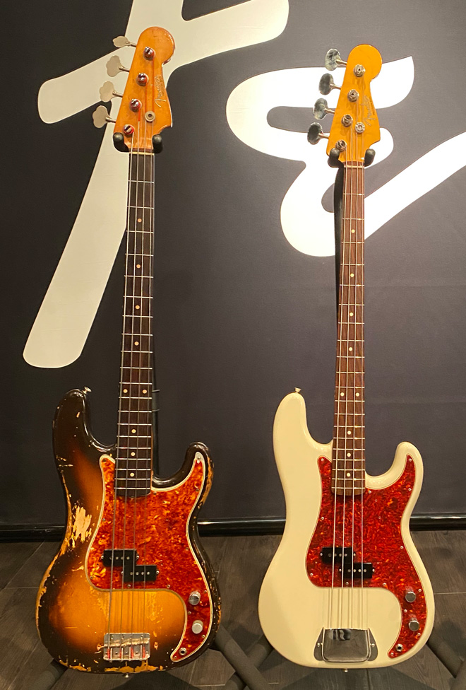 左:Fender Precision Bass 1959年製、右:Hama Okamoto Precision Bass”#4″