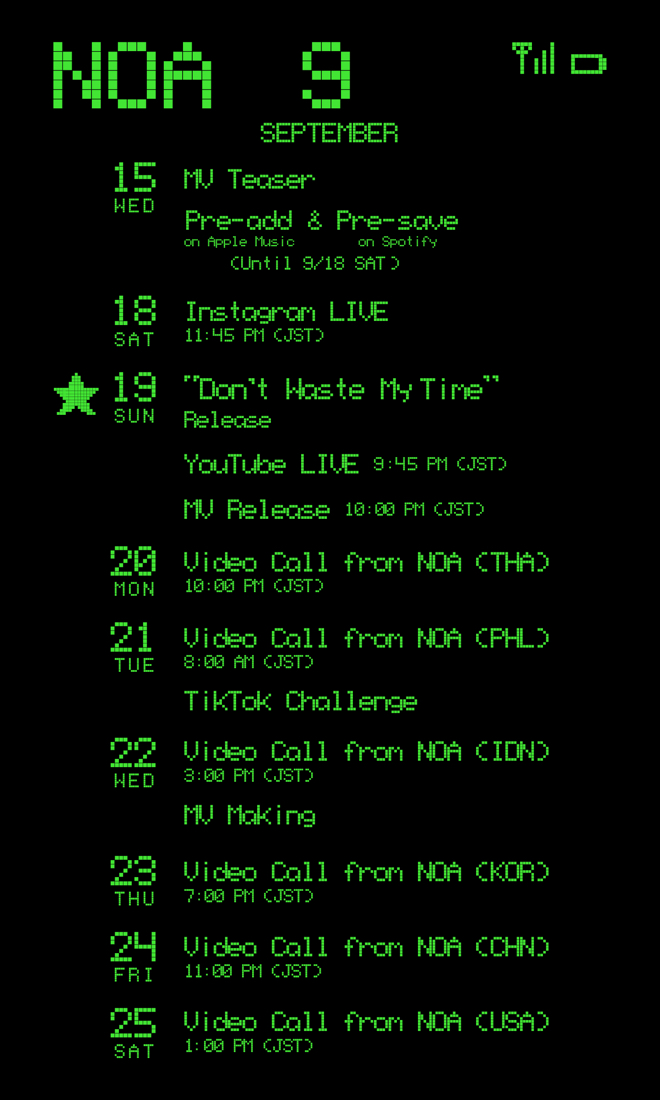 「Don’t Waste My Time」は8月にリリースされた「LET GO feat. JEON WOONG (AB6IX) 」に続く、3か月連続デジタルシングルの第2弾となる楽曲だ。“男女の駆け引きし合う時間”がテーマの歌詞をヘヴィなトラックにのせて歌ったラブソングだという。NOAは次のようにコメントしている。