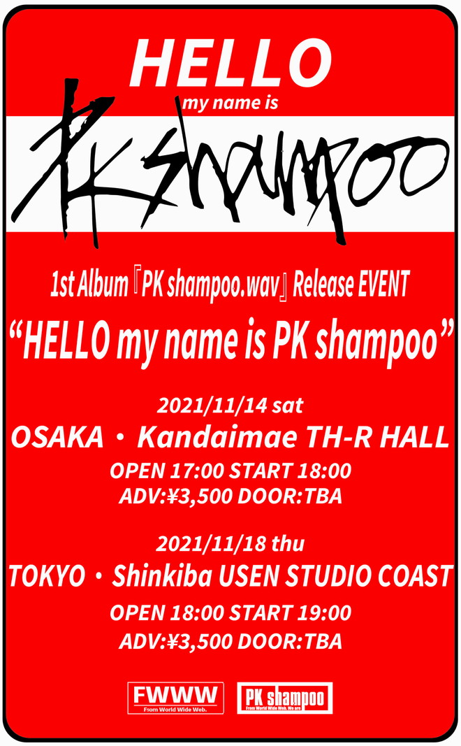 また、今作のリリースを記念して、全国ツアーを前にリリース記念ライブ<HELLO my name is PK shampoo>の開催が決定。11月14日(日)に大阪・関大前TH-R HALL、11月18日(木)に東京・新木場USEN STUDIO COASTで行われ、チケットは本日9月16日(木)21時より先行抽選応募がスタートしている。