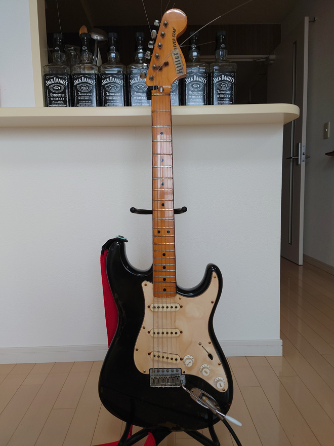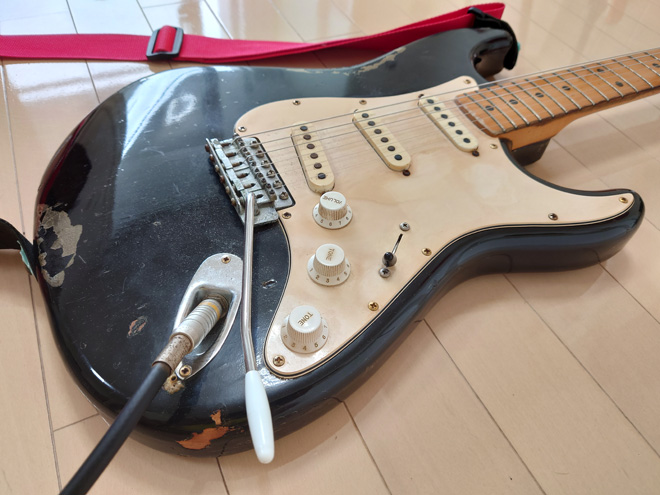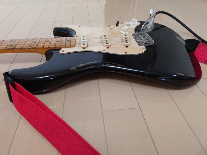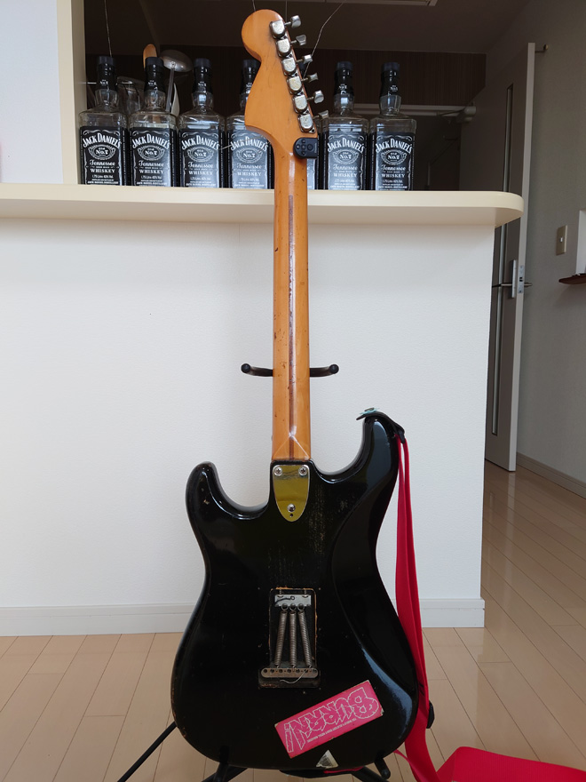 実はこれ、大学の軽音楽部の部室に捨てて(放置?)あった1本なんです。それまで、アリアプロIIのレスポールとフェルナンデスのジミーさんモデル(フライングV)を使用しておりましたが、同級生や先輩はみんなストラトキャスターを持っていて、イングヴェイを神様と慕う自分としては、ストラトを弾きこなせないとギタリストでは無いと思っていたものの、買うお金もありませんでした。