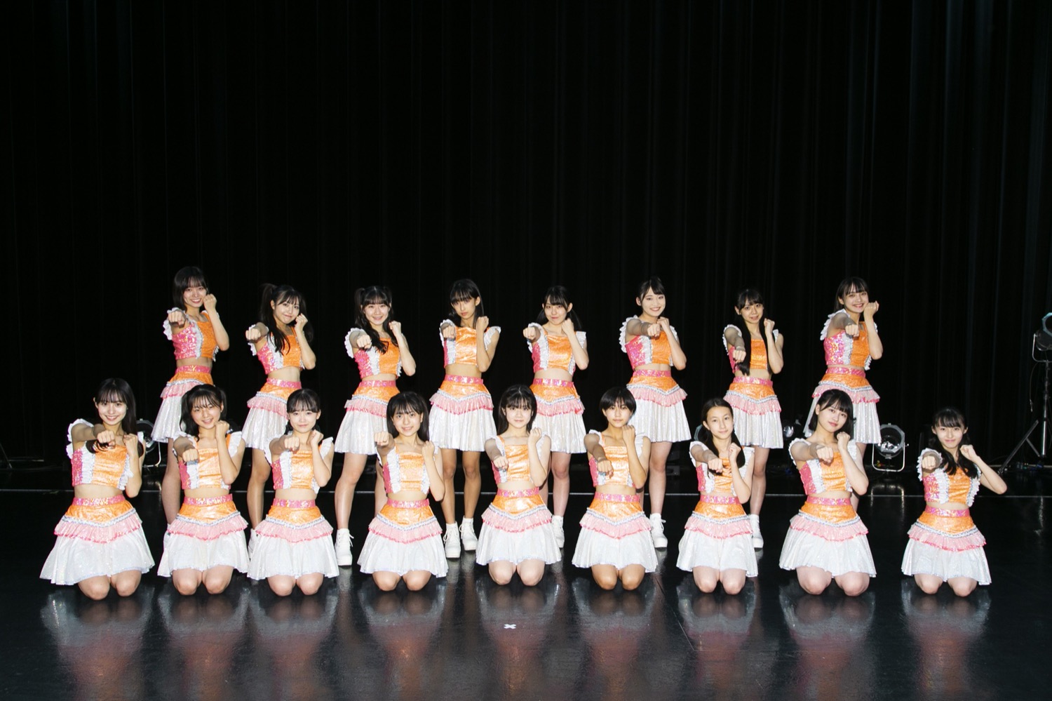本編はアップテンポなナンバー「きみの登場」でスタート。オレンジ色の衣装に身を包み、晴れやかな表情の15名が一斉に登場し、間髪あけずに「ありがた迷惑物語」へ。拳を振り上げ、若さみなぎる力強いダンスを披露した。
