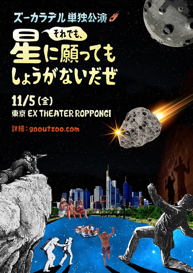 ズーカラデルが11月5日(金)にEX THEATER ROPPONGIにて、<ズーカラデル単独公演「それでも、星に願ってもしょうがないだぜ」>を開催することが決定した。