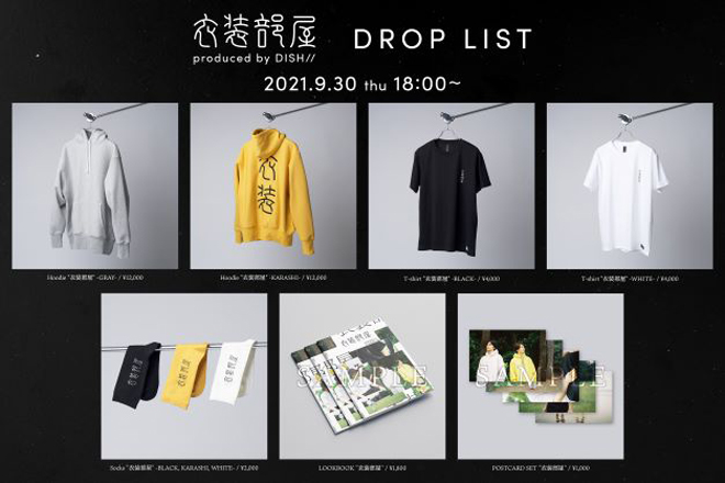 「衣装部屋」のアイテムは、DISH//オフィシャルファンクラブ『皿組GOLD』会員限定のオンラインストアにて、9月30日(木)18時より発売開始。詳細は公式サイトよりチェックしてほしい。