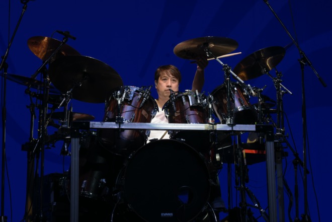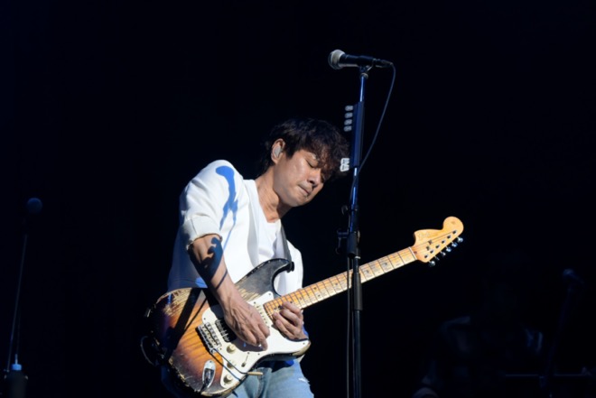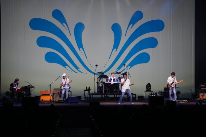 真っ白なジャケットとブルージーンズ姿の前田亘輝(Vo)、春畑道哉(G)、角野秀行(B)、松本玲二(Dr)がステージに登場。「いろいろな制限がある中だけど、楽しんでいってちょうだい!」との前田の第一声から、歌い、音を奏でると、伸びやかなヴォーカル、心地いいグルーヴに“TUBEの夏がやってきた”という気持ちにさせられる。いつでもどこでも照りつける太陽、吹き抜ける潮風を連れてくるようなアクトは彼らならではだ。