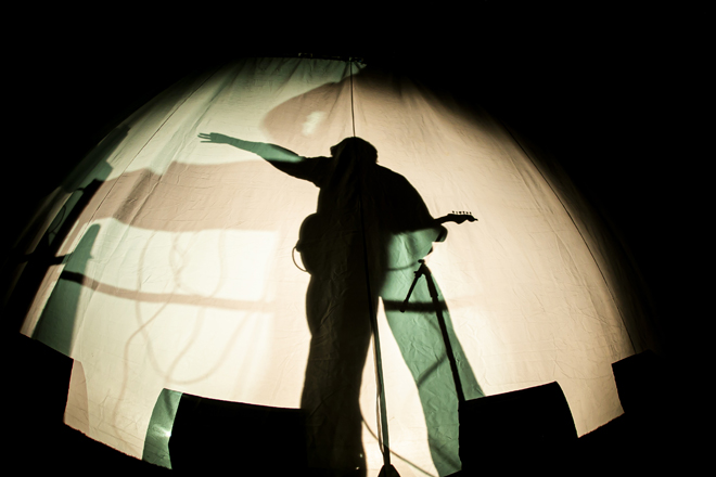 当初、8月に予定されていたものの、新型コロナウイルス感染拡大の状況を鑑み、2度の延期を経た本公演は、感染症対策を講じた有観客ライブがソールドアウトとなり、当日、会場に足を運べないファンのためにライブ配信も行われた。ウィズ・コロナの時代における音楽を取り巻く状況は依然として先が見えないが、Momは来場者に配布したパンフレットにおいて、“今見えているすべてを虚構で染め上げ、一瞬間を普遍的な体験として記録”するべく制作したという新作アルバムの意図を説明。その発展形である、この日のライブは架空の都市、セタガヤを構築するべく、DJの田中光をバックに、たった一人でオーディエンスと向き合い、1時間半にわたってパフォーマンスを繰り広げた。