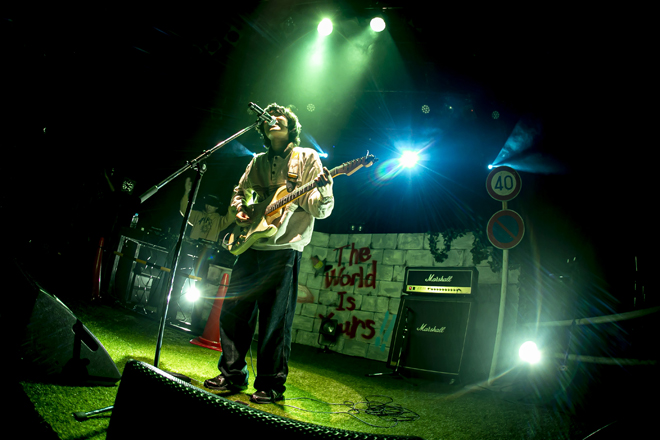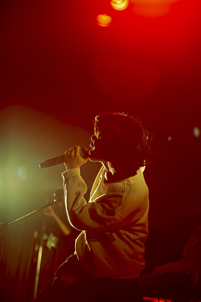 “ラッパーでもバンドマンでもない”Momは、歌との垣根なく巧みにラップもすれば、ギターもプレイする。バウンシーなビートをメロディアスなフローで乗りこなす「Momのデイキャッチ」では手にしたギターで歪んだサウンドをかき鳴らし、続く「あかるいみらい」ではマイク一本で、明るくない今の時代の日々の葛藤を皮肉交じりに描き出し、ステージ上でもジャンルや形態にとらわれない自由な音楽性を謳歌する。ライブにおいては会場のスピーカーから爆音で鳴らされる自作トラックの立体的なサウンドと共に、曲ごとにヒップホップに歩み寄ってみたり、ロックに歩み寄ってみたりと、表現の切り替えの巧みさ、柔軟さが際立っていた。