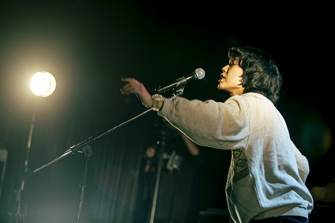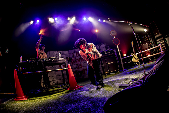 「こんな世の中で、どう生きればいいのか。この先も続く理不尽と戦うために、知性を上手く使って抗っていきましょう」というつぶやくようなMCの語り口に対して、新作アルバム『終わりのカリカチュア』のリリックは“普通とされているもの”を疑う批評性の切れ味は鋭い。声は上げられなくても、両手を挙げることでパフォーマンスに応えるオーディエンスとは、「泣けない人には優しくない世界」が象徴する現代社会の居心地の悪さをものともせず、音楽がもたらす高揚感を糧に前に進んでいこうというメッセージを共有。会場はMomの心地良い居場所である架空の都市セタガヤそのものになった。