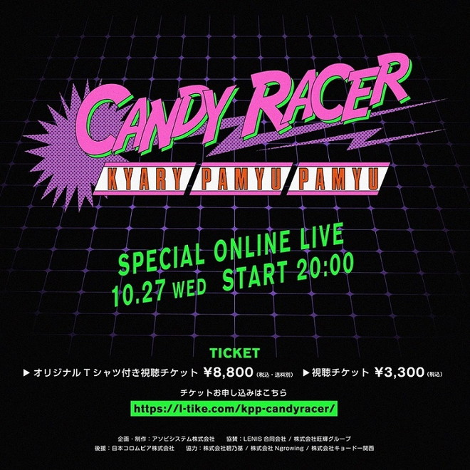 10月27日(水)に5thフルアルバム『キャンディーレーサー』を発売するきゃりーぱみゅぱみゅ。この日限りのスペシャルな演出が繰り広げられるオンラインライブは、アルバム発売日当日の20時に配信がスタートする。チケット購入者は、11月17日(水)までアーカイブ配信を何度でも楽しむことができる。