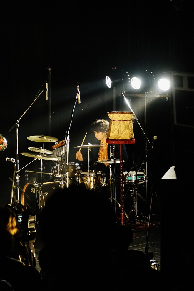 「みなさんこんばんは、chilldspotです、今日はよろしくお願いします」という比喩根の声に拍手が起き、シームレスに曲をつないでいく。前奏に一度ピークを持ってきたり、ブレイクを多用したりするなどのアレンジがふんだんにほどこされ、音源とは一味違うライブ感に満ちた序盤になった。彼らの演奏にはメリハリがあった。ポストロックバンドのような重厚な瞬間があったと思えば、次の瞬間にはベテランのジャズカルテットのような軽やかさを見せる。ジャンルを特定しにくいこのバンドは、ライブでこそ、その魅力を最大化させるらしい。