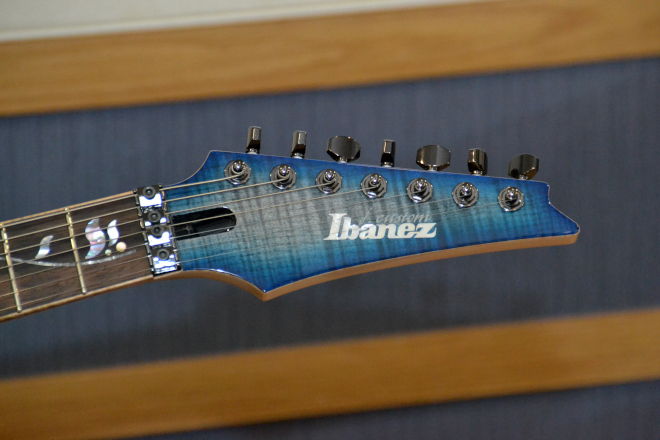 葉月:アイバニーズのj.customシリーズRG8527Zです。普通に市販されているモデルで、今年の5月くらいからメインのギターとして使っています。j.customシリーズは、前に6弦のモデルを持っていたんですが、手放してしまってすごく後悔していたんです。このシリーズはすごく好きだったし、その6弦のモデルも良いギターだなと思っていたので。
