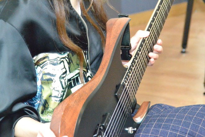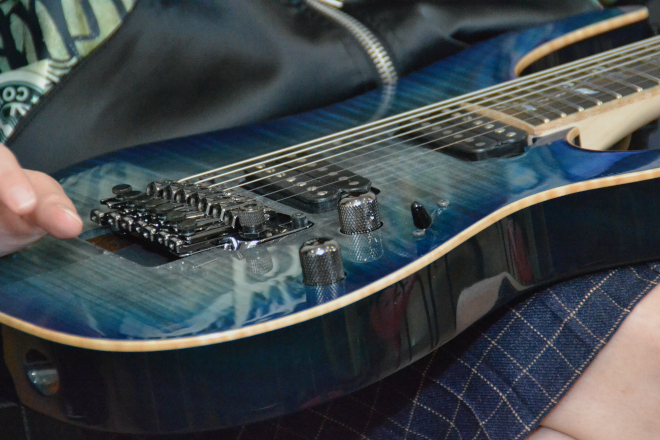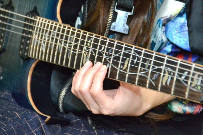 葉月:私はけっこう見た目を重視するところがあって、ギターを低く構えるのがカッコいいとか、そういう見た目の部分からギターに入ったところもあるんです。だからこのメインギターのツリーのインレイみたいなかわいいところって、すごく大事なんです。気に入ったギターなら気分も上がるし、やる気も出ますから。見た目から入っても全然かまわないと思うから、どんどんかわいいギター、カッコいいギターを選んでもらいたいです。そして、女の子にも7弦にどんどん挑戦してほしいです。“7弦女子”がもっと増えたらうれしいし、そうなったらメーカーさんも、女子向けのかわいい7弦ギターをもっと作ってくれると思いますから。