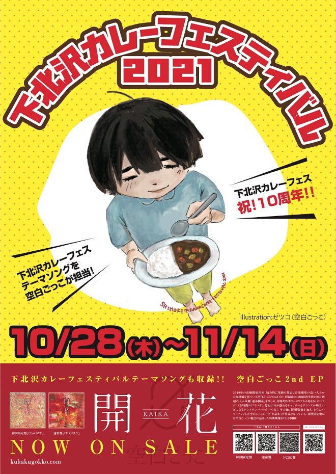 また、<下北沢カレーフェスティバル2021>内のスタンプラリーで21スタンプ集めると貰える限定Tシャツのデザインをセツコが担当。さらにカレーフェスティバル参加店には空白ごっこコラボ限定ポスターも掲示される。イベントの詳細はオフィシャルサイト(https://curryfes.com/)まで。