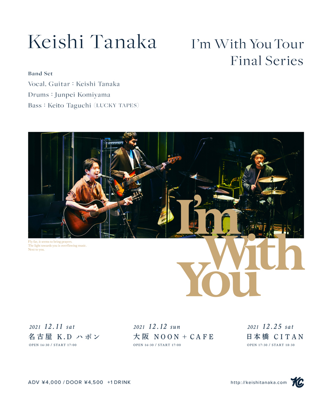 Keishi Tanakaが、12月に東名阪ワンマンツアー<I’m With You Tour, Final Series>を開催する。