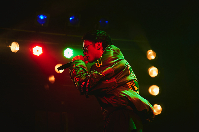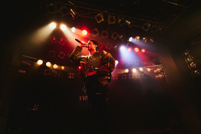 「『FRONTIER』はHilcrhymeがこれまで作ってきた轍と、これから作っていく轍を書きたかった」というMCに続いて、彼が現在も新潟に拠点を置き、その街への思いとそこから全国へ名前を轟かす意気込みを改めて歌う「East Area -戒-」、そして自らの生き様を歌う「唯一無二」と、まさに彼のキャリアとそこへの自負を歌う曲を披露し、客席からは大きな拍手があがる。そして、ハードな雰囲気が強いこのアルバムの中で、唯一の幸せなラブソングである「夜光性」を披露。メロウで優しいトラックに合わせ、柔らかにラップを乗せながら、間奏パートではサングラスを外し客席を見回したHilcrhyme。そこからはこのアルバムとライブへの自信と、観客への感謝を窺わせた。