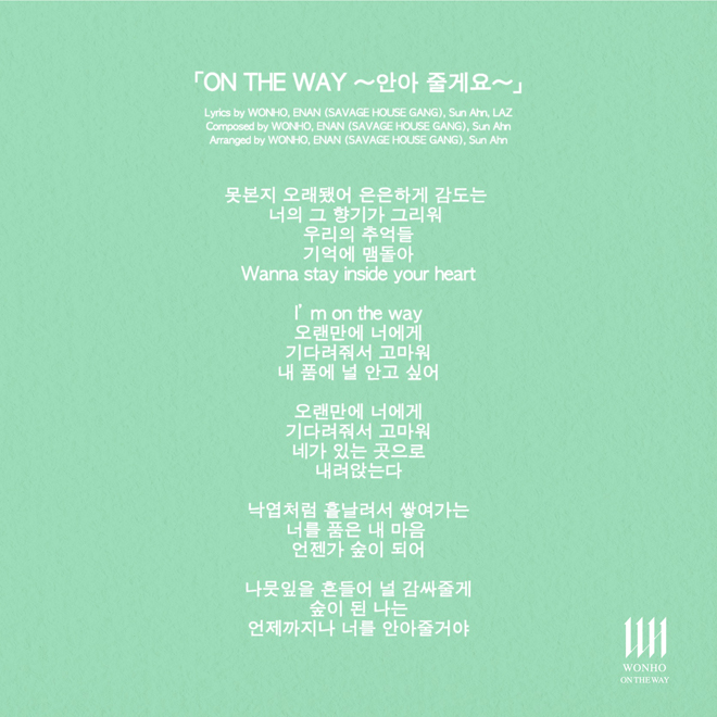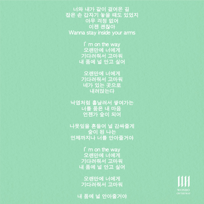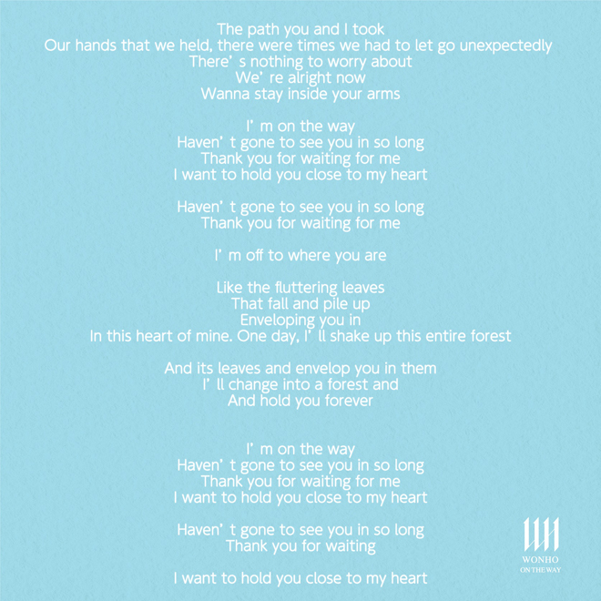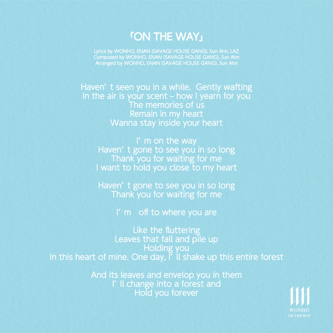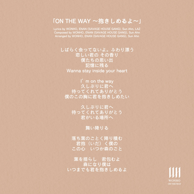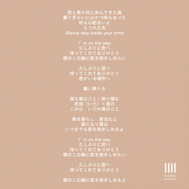 さらに、今作はWONHO自身が書き下ろした初の日本語歌詞であるが、その歌詞の全貌が公開された。韓国語・英語の翻訳も公開されている。