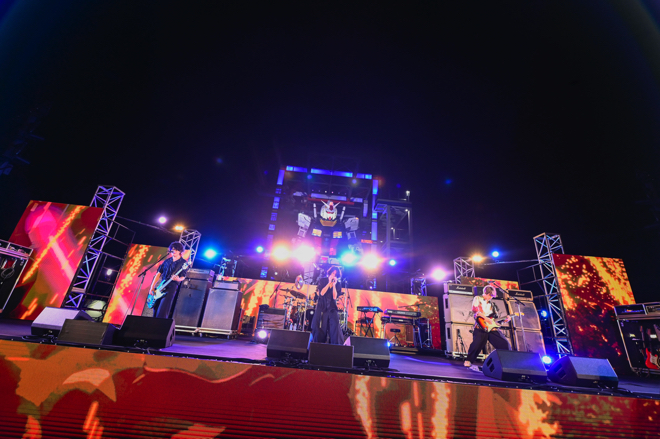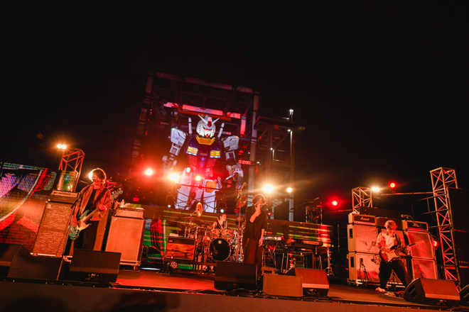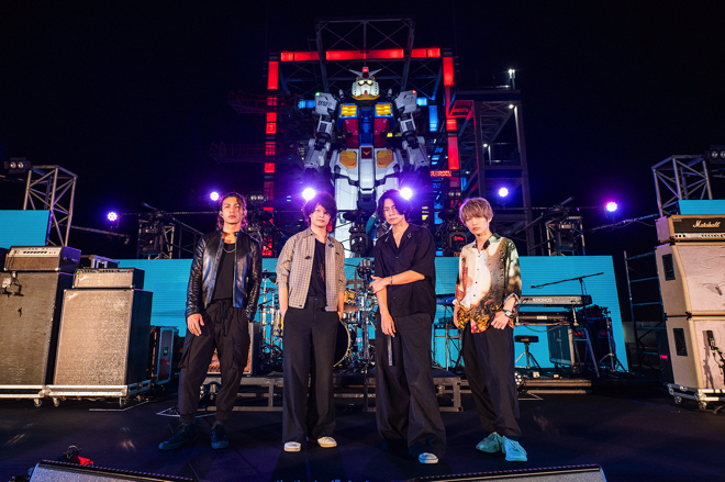 同イベントでは彼らが主題歌を担当する映画『機動戦士ガンダム 閃光のハサウェイ』の上映と共に、全高18メートルの“動くガンダム”がそびえる神奈川県横浜市の「GUNDAM FACTORY YOKOHAMA」でのライブの模様を生中継。主題歌「閃光」と「閃光 (English ver.)」を含む4曲のパフォーマンスが披露された。以下、そのオフィシャルレポートをお届けする。