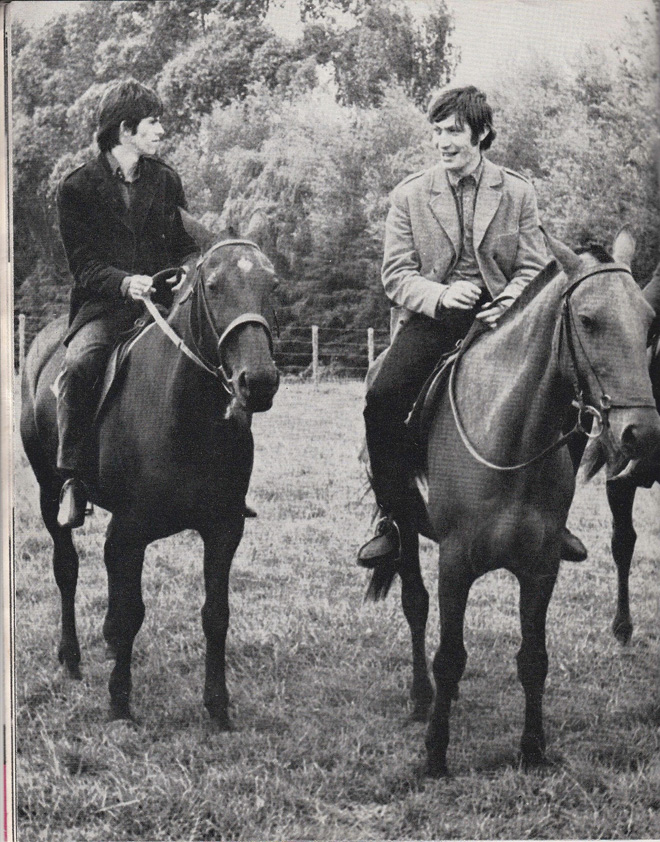 チャーリー・ワッツとシャーリー・アン・シェファードは1964年10月14日に結婚。二人は50年以上仲睦まじく暮らした。二人の趣味は馬、英国ディヴォン州に構える別邸の牧場で多くのアラブ種を育てスダッド・ファームに本格的に取り組んでいた。そんな馬が大好きだったチャーリーを思わせるショットがTHE ROLLING STONES BOOK/No.11 に掲載。キースと乗馬を楽しむチャーリーだ。