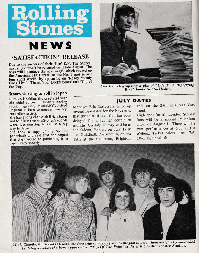 日本を代表する音楽雑誌「ミュージックライフ」の24歳の編集長である星加ルミ子は、6月にイギリスを訪れ、多くののトップ・レコーディング・アーティストを取材。ブライアン・ジョーンズを長時間インタビュー、ストーンズのレコードが日本で大々的に売れ始めたと報告。そしてこのRSB日本版を出版出来ればと願っていると彼女は語った。