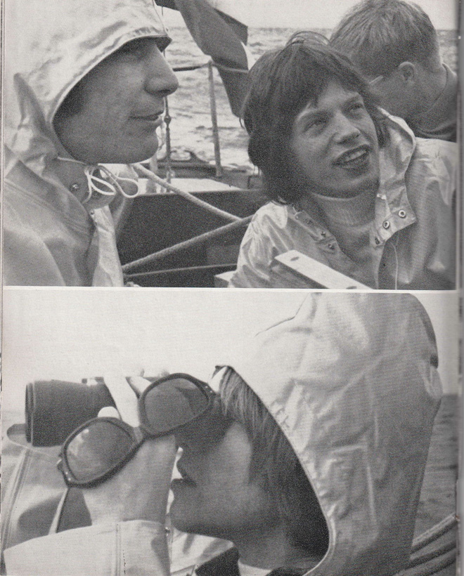 No.16に掲載されたオーストラリア・ツアー中に海でセーリングを楽しむミック・ジャガー、ブライアン・ジョーンズそしてチャーリー…。