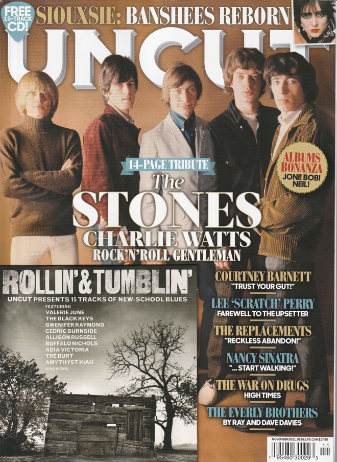 チャーリー・ワッツが亡くなって多くの追悼記事を見ながら涙してしまった9月だった。そんな中で僕が一番注目したのがUK音楽雑誌「UNCUT」11月号だ。以前に比べ大分頁数が減ったけど、それでも充実したロックでロールな内容は僕らをワクワクさせる。同号表紙はストーンズで(チャーリー・バージョンもあるとのこと、探し中です)、本文で<CHARLIE WATTS 1941-2021 He was one of a kind>というタイトルで14頁に亘って大特集なのである。